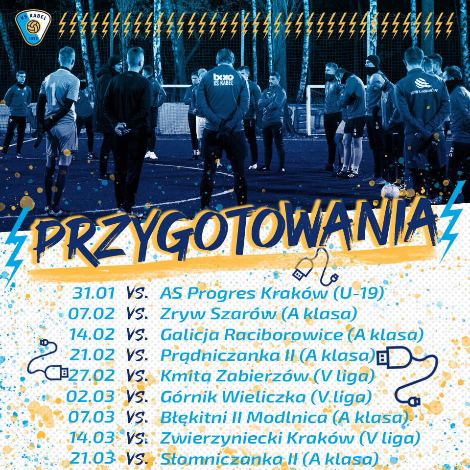 Pierwszy z nich zaplanowany został na 31 stycznia, kiedy to Kabel zagra z zespołem juniorskim AS Progres Kraków. Na początek przygotowań zaplanowano także testy wydolnościowe. "Kablarze" od początku roku pozostają w treningu indywidualnym.